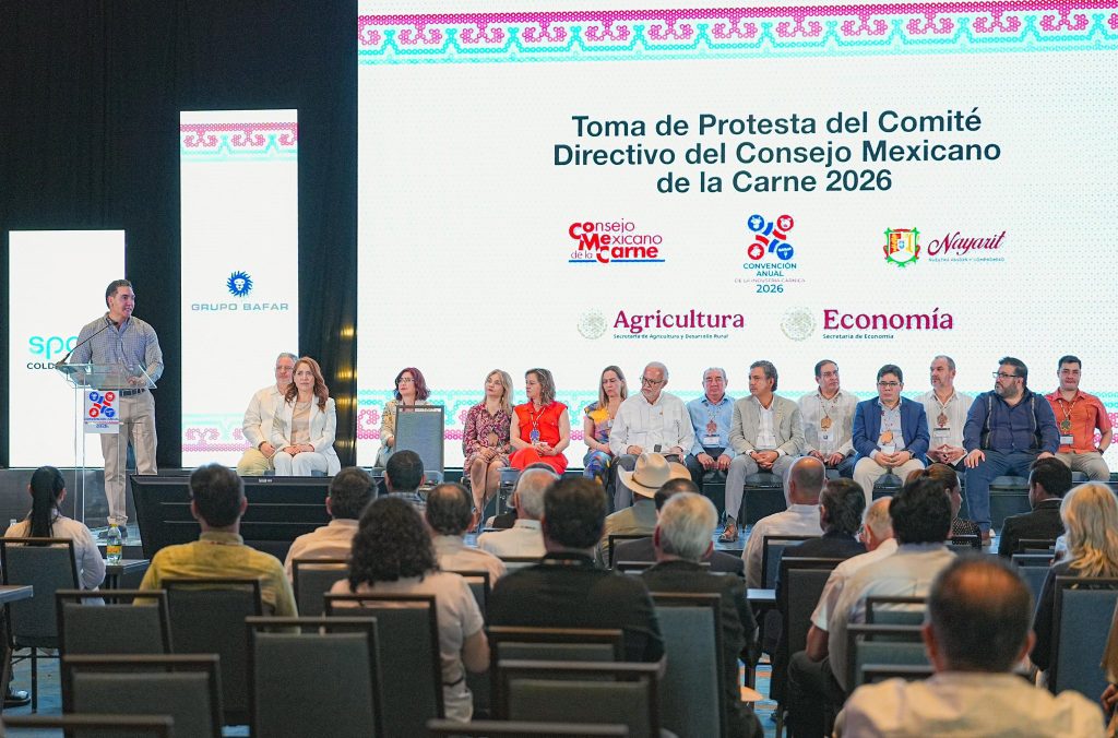 En el marco de la Convención Anual de la Industria Cárnica 2026, realizada en Bahía de Banderas, el gobernador Miguel Ángel Navarro Quintero tomó protesta al nuevo comité directivo del Consejo Mexicano de la Carne (COMECARNE).